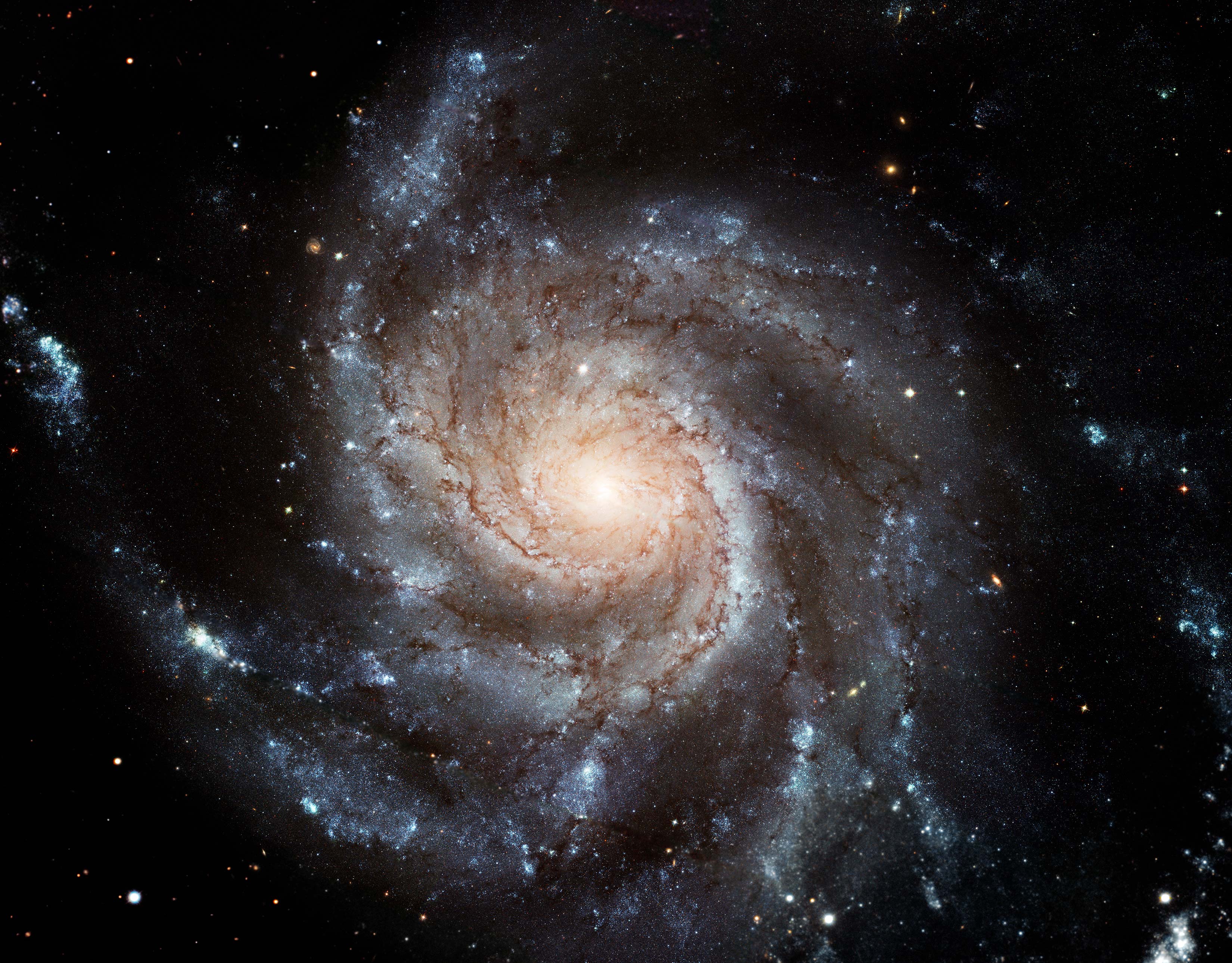 The most common type of galaxy is the spiral galaxy. The spiral form is similar to that of conch shells and many other living systems found in nature on planet Earth. The picture shown here is of the Pinwheel Galaxy.